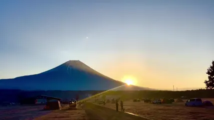 おはようございます😃富士山🗻が明るくなって来ましたよ♪現在−4℃ですが体感はそんなに寒く感じません!日の出🌅を見るためキャンパーさん方スタンばってます😊