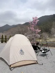 初めてのお花見キャンプにお馴染みのケニーズファミリービレッジにやって来ました♪ただ少し早かったみたいで大きな桜の木は一部を除きまだまだこれからでした。しかーし自分のサイトに行ってみると可愛い桜の木が満開で出迎えてて素敵なお花見キャンプを楽しめて最高の思い出になりました♪桜味のジェラートも美味しかった