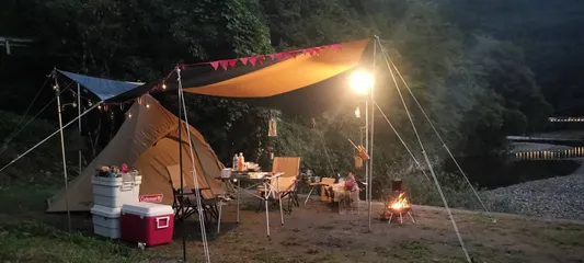 生憎の雨で気分はダダ下がりでしたが、車中泊とタープ連結で雨にも濡れず快適に過ごせました。早めの撤収で雨に降られず良かったです。近隣の工場か何かの音が夜中気になりましたが、スタッフの対応には、事前の問い合わせや、受付時など満足でした。