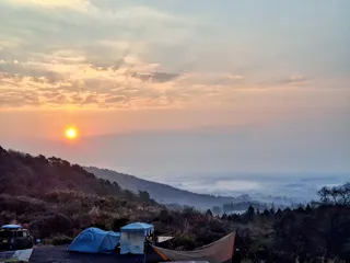 ゴルフ場跡地を利用した広々としたキャンプ場きれいな夕日に南国気分を満喫