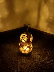 ひょうたんに模様を彫り 中にあかりを灯したものです。茨城県桜川市真壁のひな祭りのイベントで見つけました。かわいくて買ってしまいました。キャンプでもこの光に癒されたいと思いました。 他にも大小さまざまなものやいろいろな模様がありました。