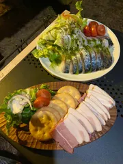今日はお昼に引き続き手抜き夕食🍽️です😆♡バジル🌿のしめ鯖オイル漬け♡ジンギスカン味付けの鶏もも♡とってもおすすめベーコン🥓 このベーコン🥓は焼かずに食べるのが一番 美味しいベーコンです❣️