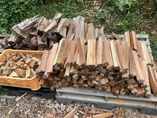 台風前に販売用の薪の準備😆丁寧に1カゴずつ作ります💪台風が近づいているようなので、天気予報を確認しながら安全にキャンプを楽しみましょう⛺写真の左側にある薪づくりで出た木っ端たちを1カゴ500円くらいで販売を考えています🤔決まり次第またご報告します📣
