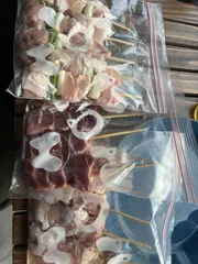 昨日の夕食🍽️家で下準備した焼き鳥と買い足したイカ刺し😆せっかく炭火焼きしたくて炭を買い炭火焼きのために焼き鳥作って行ったのに強風で出来ず…グリドルで焼きましたー😆