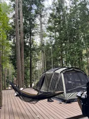 1ヶ月ぶりのキャンプ🏕️ 今回は初ハンモック。ゆらゆら、楽しかった〜😄旦那は19時くらいまでハンモックでお昼寝してました🤣そして、私にしては上出来なキャンプ飯🍔ができました👏 9月末までは毎年暑いので、少しでも涼の取れるデッキサイトを予約したけど、台風の影響もあってか、日が暮れる