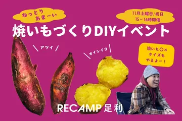 秋の味覚を味わう焼いもDIYイベントに参加しよう!RECAMP足利では、11月に焼いもづくりDIYイベント開催! 落葉を使ってねっとりあま~い焼いもを自分でつくってみよう!お芋や落葉の投入、焼き上がりのパッカーンタイム+実際に食べてみるまでをご体験いただきます。甘み濃厚で小さめのサツマイモ