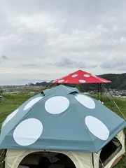36泊目2025/9/22から1泊 キャンプ⛺️始めて2度目の千葉上陸😆鋸山の裏手になるかな?海も山もあって景色は最高です♪ 現着したら安定の曇り空😅道中は良い天気だったんですよ…設営終わってマッタリしてたらイイ感じに晴れてきましたー夜ごはん🍚の準備してたらスタッフの方からくり🌰
