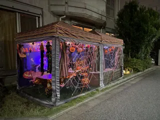 コロナ禍に子供の遊び場として設置した庭のテント。今年で5年目のハロウィン仕様となりました。