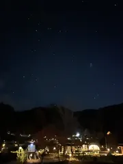 満天の星空です❣️撮影者が下手なのですみません😢実際はも〜っと綺麗です🤩 夜中はもっと星✨が綺麗でしょうねーライズは夢の中かと😅やっと空気の澄んだ景色が見られる季節になりました!! ただ…さむっ‼️ストーブつけても幕内7℃です🥶外はかなり寒い🥶🥶🥶冠雪も見られ冬キャンプの始まりを