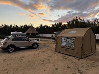 NEW 46泊目 2026/1/8から1泊 新しいテント⛺️日防のMARS8メインとフロント合わせて50キロ 電動ポンプ使ったけど上手くハマらなくて途中から手動…疲れちゃったからフロントは設営せず…風も強く🌪️焚き火🔥はお預け雲☁️も多めで星空🌌は期待できないかなぁ