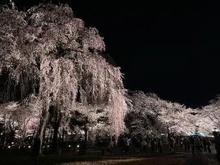 夜桜でいっぱい 新潟県高田城址公園でいっぱいの桜を見ながら1杯が最高でした😭👏✨