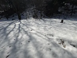 ここをキャンプ地とする! ちょっと姿勢をずらすだけで痛いのにキャンプに来てしまったしかも年末あたりに予定している雪の中キャンプの練習としての雪キャンプ(晴れてる上に比較的暖かい)ここでキャンプをすることできっと本番時に役立つ色々な気付きがあるはず まあ、どうせ私は変な生活してるの