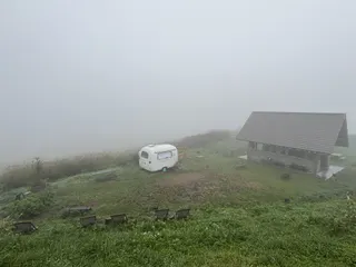 NEW 今朝の姫鶴平⋯昨夜からずっとずっと濃い霧に包まれています連泊の予定でしたが、相方の体調がイマイチのようなので⋯勇気ある決断の下?せっかくですが今回は撤収することにしました⋯なのに、せやのに⋯今、中々の雨が降っとります😅