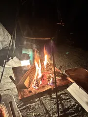 ホントは専用の鍋が欲しいのですが、とりあえずダッチオーブンで代用😆蓄熱も良くって熱々の鍋が食べられました!これぞキャンプの醍醐味!!