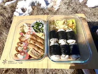 こんなに素敵な景色の中、お弁当🍱を食べましたよ🥳 腕の痛みが邪魔をするけど、なんとかお弁当🍱を作ることが出来た❣️ 気晴らしに連れ出してくれた旦那さんに感謝😊ライズ、キャンプに行けなくて落ち込んでいたので… 少しだけキャンプ気分を味わえた☺️