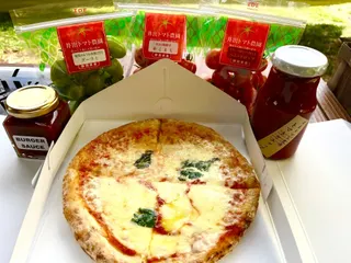 そして楽しみにしていたお昼です❣️トマト、ケチャップ、ソースを大量に買い食べたかったピザ🍕を購入🥳焼きたてピザ🍕美味しい!ちょっとピザ1枚だと物足りないので唐揚げとポテト🍟を作りました😆買ったケチャップを付けて頂きましたよ〜!トマト🍅は華こまちが1番美味しい🤤最高のロケーションで大好き❤なトマトづく