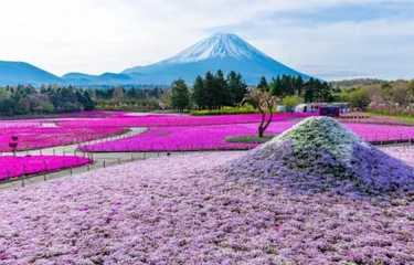 NEW 【圧倒的な「ピンクの絨毯」と富士山のコントラスト】キャンプ場の朝、澄んだ空気の中で目覚めた後に待っているのは、首都圏最大級・約50万株の芝桜が広がる大パノラマです。 濃いピンクの「マックダニエルクッション」や、優雅な「オータムローズ」、そして白や紫など7品種の芝桜が咲き誇り、残雪の富士山との鮮やかな