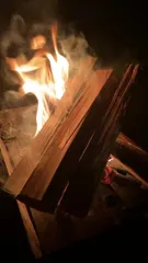 焚火の匂いパチパチという音虫の声暗闇の中非日常癒し