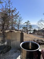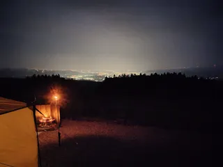 条件整うと山頂から 見えるとスタッフさんが 仰ってました😊 美術館サイトからだと 歩いて50分… 一番上の駐車場からだと 5分で山頂に行けると… 古墳とUFOは埋まってました🐼 何故か美術館だけパンダ🐼1人 美術館真横を予約したのですが 貸切状態だから好きな所を 使ってと仰って頂いたのですが 山