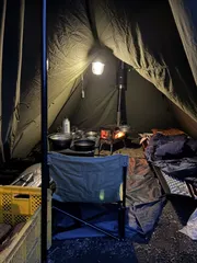 1人薪ストーブ時間は最高です ソロティピー1tcに薪ストーブをセットしてのソロキャンプです。 何もせず薪ストーブを眺めてる時間がなんとも言えず癒されました