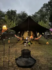 秋の夜長、里山の古民家キャンプへようこそ 澄んだ空気に包まれる里山の夜。夜のせせらぎ、焚き火の揺らめき、虫の声。夏とは違う落ち着いたひとときを、古民家ファミリービレッジでどうぞ。平日のキャンプなら、人混みを気にせず、静かに過ごせる贅沢な時間。雨の可能性もありますが、屋根付きスペースや電