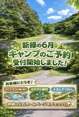6月の予約開始のお知らせ 本日は、ぽかぽかと春を感じる一日となりましたね。明日3月1日より、「6月のご予約」がスタートいたします!気温も上がり川遊びを楽しめる季節となります。場内を流れる名栗川は、透明度が高く元気な水生生物たちの姿を見れます6月下旬には、ホタル観察のチャンスもございます。&