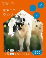 5/2(土)・5/3(日) 散策ツアーとウシノハナシ🐄ウシノヒロバの場内を歩きながら、この場所の歴史をゆっくりとお話しします。ツアーの最後は牛舎のそばへ。ウシを見ながら、ウシのことを聞いてみませんか。ゴールデンウィークの思い出に、ぜひ遊びにきてくださいね。.日時:5月2日(土)15:00