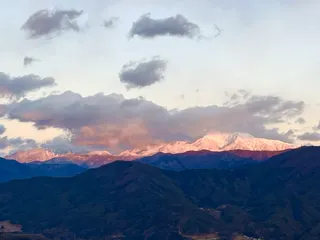 日が沈みました!南アルプスは少し赤く染まりました😊夜はほんのり夜景🌃も見れます! あっ!そうそう!上級者サイトの件ですが😅全然普通です🤣ただ…地面が硬いのと風が強いとの事!焦らせないでよ〜😅 キャンプ場の方いわく、こちらのフリーサイトはほぼ使う方がいらっしゃらないとの事で人気がな