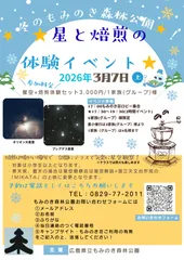NEW 【冬の特別企画】満天の星とコーヒーの香りに包まれる「星と焙煎の体験イベント」開催!皆さん、こんにちは!もみのき森林公園キャンプ場です冬の夜、静まりかえった森で見上げる星空は、一年で最も美しく輝きます。そんな特別な時間をさらに贅沢に彩る、新しい体験イベントのお知らせです! イベント概要:冬のもみのき森