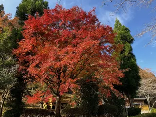 皆様こんにちは!かさとぴあスタッフの杉山です。今かさとぴあの紅葉🍁は盛りを迎えています。少し前までまだ緑が残っていたモミジも一気に色づきました。ただ一気に色づいたということは散るのもまた早いということらしいです。別の場所の先に紅葉の盛りを迎えていた場所ではもうすでに散り終わっています。秋の色づきはア