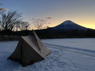 NEW 朝霧高原にやってきました。大寒波が来るということでここ数日天気予報を穴が開くほど見てました。予報見たところで現場がどうなるかはその時次第ですけども。翌朝は立派な富士山を拝むことができて良かったです。最低気温-6℃でも無風、快晴なら問題なく眠れることを確認しましたが、強風ならアウト、寝具類一つでも忘れ