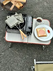NEW 🍞 新レンタル品「ホットサンドメーカー」のご紹介 🍞 具材を挟んで焼くだけで、外はこんがり、中はとろり✨チーズやハム、チョコバナナなど、アレンジも自由に楽しめます。 ガスコンロや焚火での直火調理OK🔥朝のひとときや焚火の時間に、焼きたての香ばしさをどうぞ。(レンタル料金:1泊55
