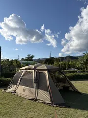 第21回ここをキャンプ地とする2025.11.1みぼろ湖オートキャンプ場デデーン!新幕登場!グロッケ8TC初張りだけど進研ゼミで何度も見たやつだからちゃんと出来た!薪ストーブ入れてお篭もりスタイル新しい一酸化炭素チェッカー新しい椅子メイフライのローチェア、アノンに新ドッグコット設営後のおやつは岐阜の