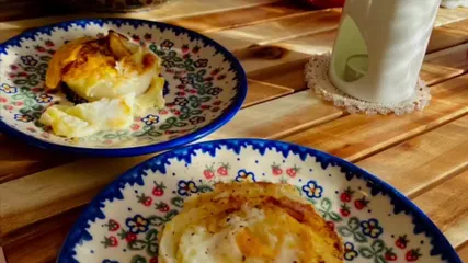 NEW 🏕️映えるおっさんキャンプ飯🏕️ 材料は玉ねぎ たまご チーズの3つ 焼くだけ 可愛いお皿に盛り付けすれば ま〜なんという事でしょ〜😎