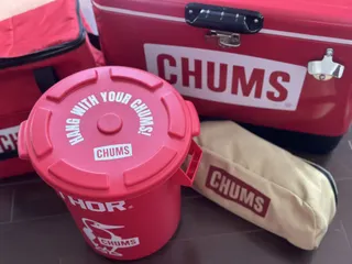 🏕️チャムスアウトレット🏕️ 開店を待つおばキャン娘が撮ってくれました😎 椅子に着けるツールケースを購入😊