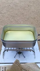 この時を待った……。不戦敗に終わって以来、幾星霜。ついに来た、反撃の刻っ!フライドポテト、リベンジだ〜っ!! ……というわけで、ソト飯です。前回モノを忘れて出来なかったフライドポテトをやっていきます。 今回の主役は、ダイソーのメスティンフライヤー。 付け合わせに、食材ス