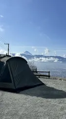 富士山見える?見えない? 富士山🗻が見えるキャンプ場🏕️の、はずが初日はガスってしまって全く富士山🗻見えず😭翌朝から晴れて、期待通りの富士山🗻見れました😆(トップ画像は2日目の朝のもの)