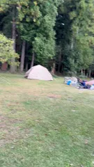 しもはじ埴輪キャンプ場は満サイト近くてもこのスペース!※画像は山桜サイト 焚き火と夜には満タンの夜空をお楽しみください